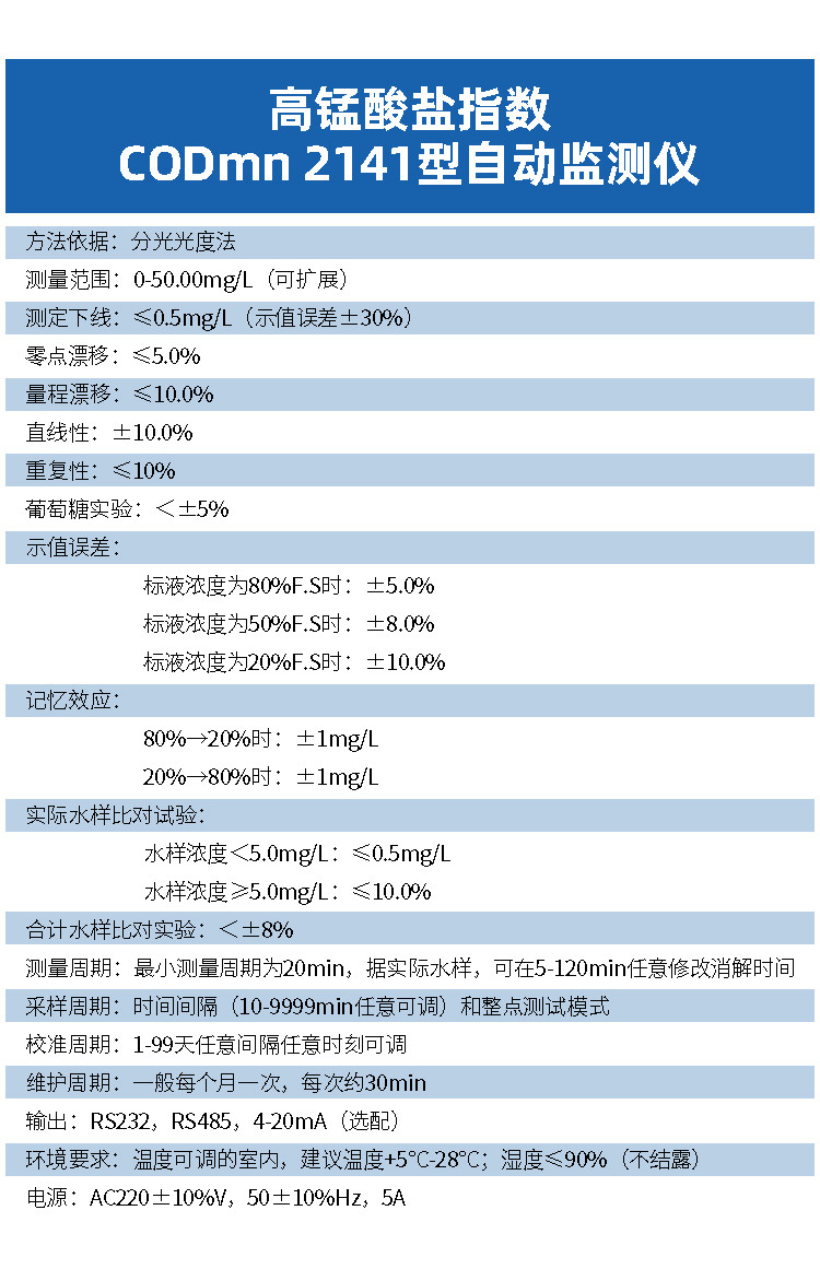MDS-811高錳酸鹽指數(shù)(CODmn)在線檢測儀采用高錳酸鉀消解分光光度法,符合國標(biāo)要求。優(yōu)化的內(nèi)部結(jié)構(gòu)使其操作更加簡單快捷,在線數(shù)據(jù)輕松獲取,更易與實驗室數(shù)據(jù)、國標(biāo)數(shù)據(jù)對比。
